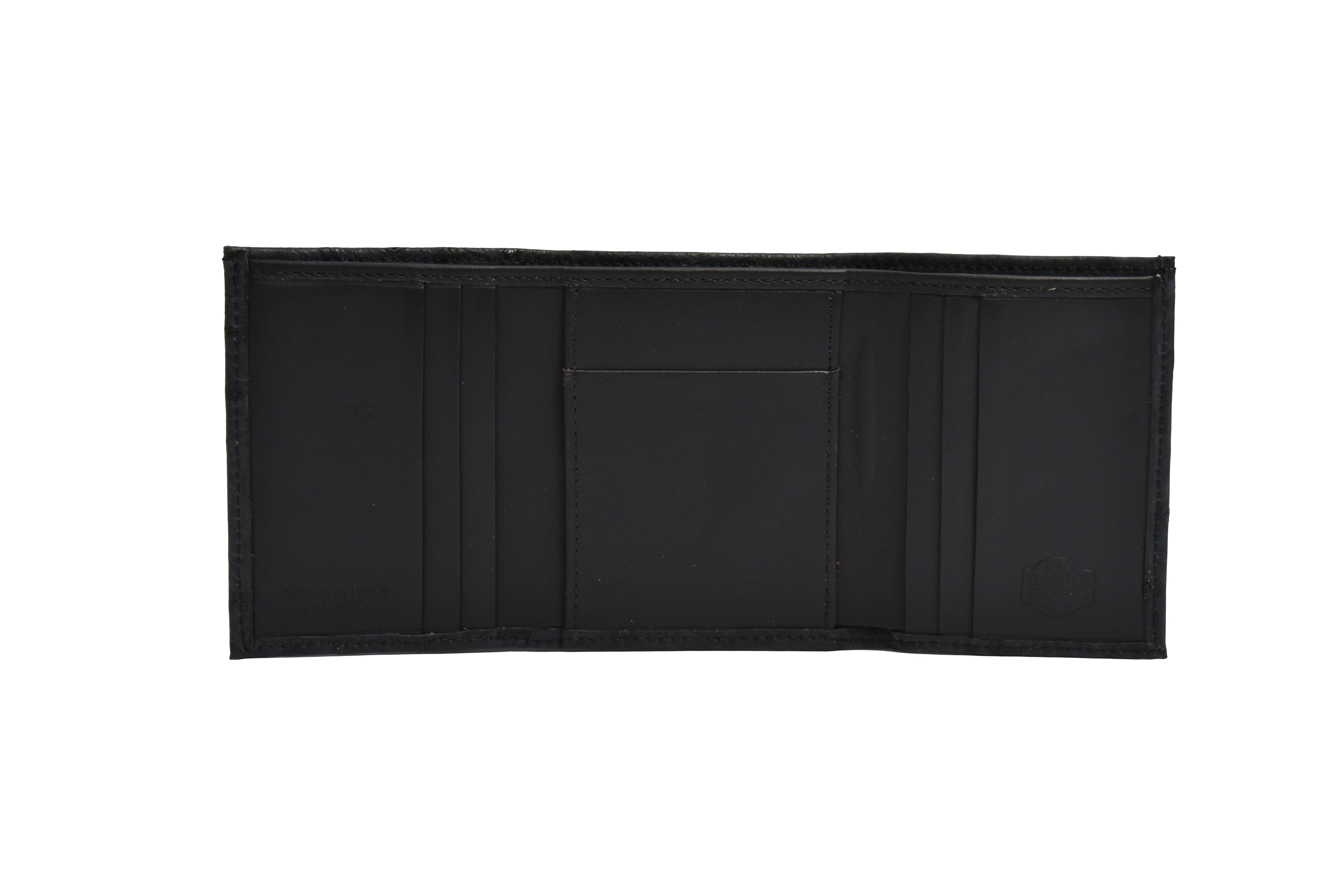 A large center currency pocket allows bills to be stored flat and secure, making it perfect for everyday use. The turned edge construction adds strength, durability, and a clean finished appearance.